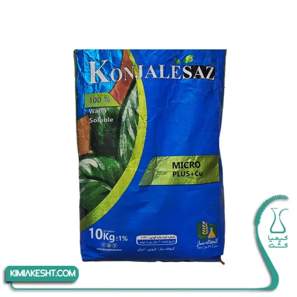 ترکیب فعال کود شامل سولفات مس (CuSO₄·5H₂O) است که همراه با مجموعهای از عناصر کممصرف ضروری، بهصورت محلولپذیر در آب طراحی شده است: