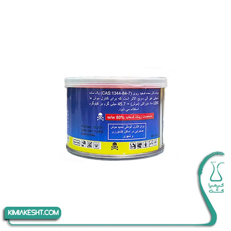 فرمول اصلی سم فسفر دو زنگ شامل ترکیب **فسفید روی (Zinc Phosphide: Zn₃P₂)** است. این ترکیب شیمیایی در حالت جامد به رنگ خاکستری تیره بوده و بوی ناخوشایند و تند دارد. هنگام ساخت این سم، فسفر با روی در محیطی کنترلشده واکنش داده تا ترکیب پایدار فسفید روی تولید شود. سپس برای افزایش ماندگاری و جذب آن توسط موشها، این ماده با مواد خوراکی مثل غلات خشک یا پودر نان و یک چربی طبیعی مخلوط میگردد تا رایحهای جذاب برای جوندگان ایجاد کند. در محصولات صنعتی مثل “کماندر هندی” این ترکیب درون قوطی فلزی ضد رطوبت بستهبندی میشود تا از واکنش با هوا و رطوبت جلوگیری شود.