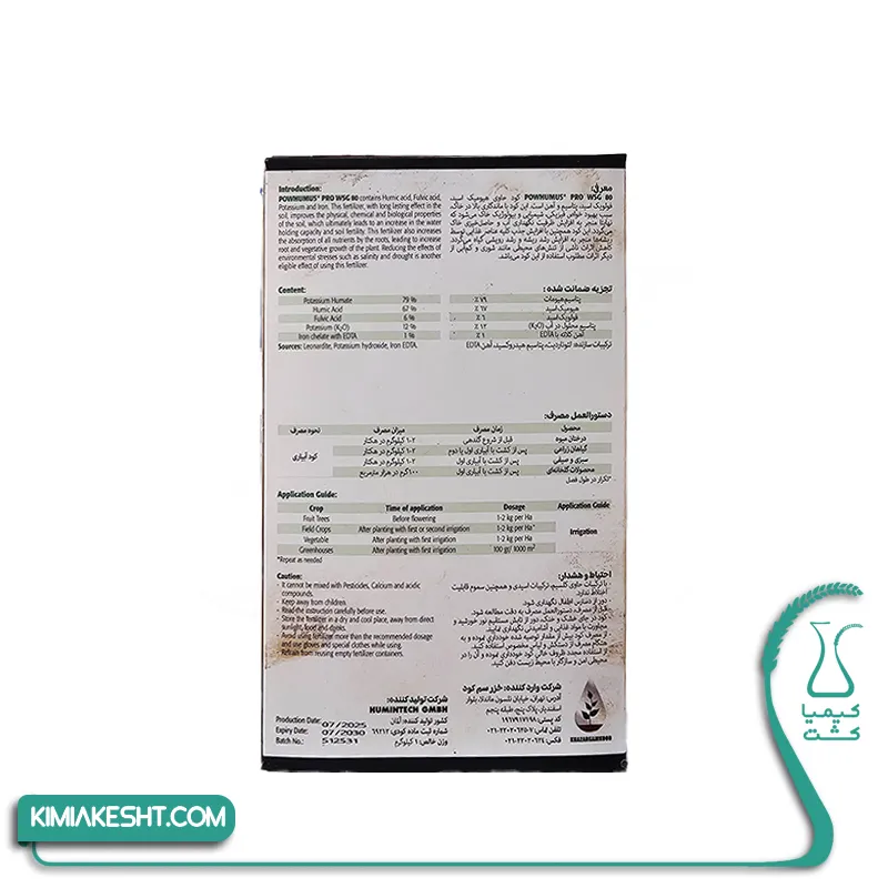 آلمانی اصل: تولید شده در کارخانه HUMINTECH GMBH با آنالیز تضمینی 79% هیومیک اسید.